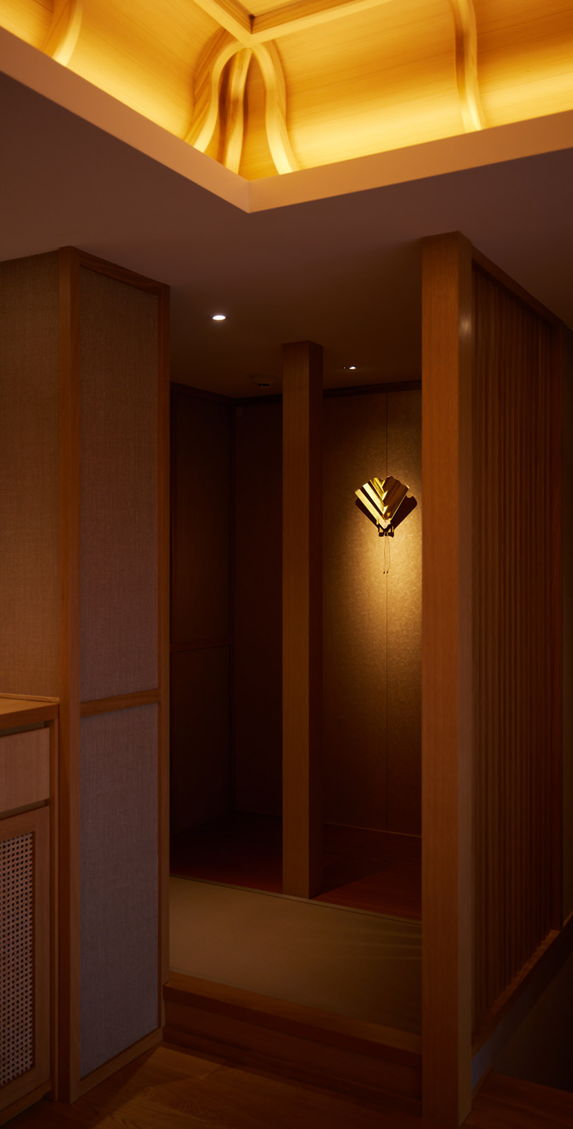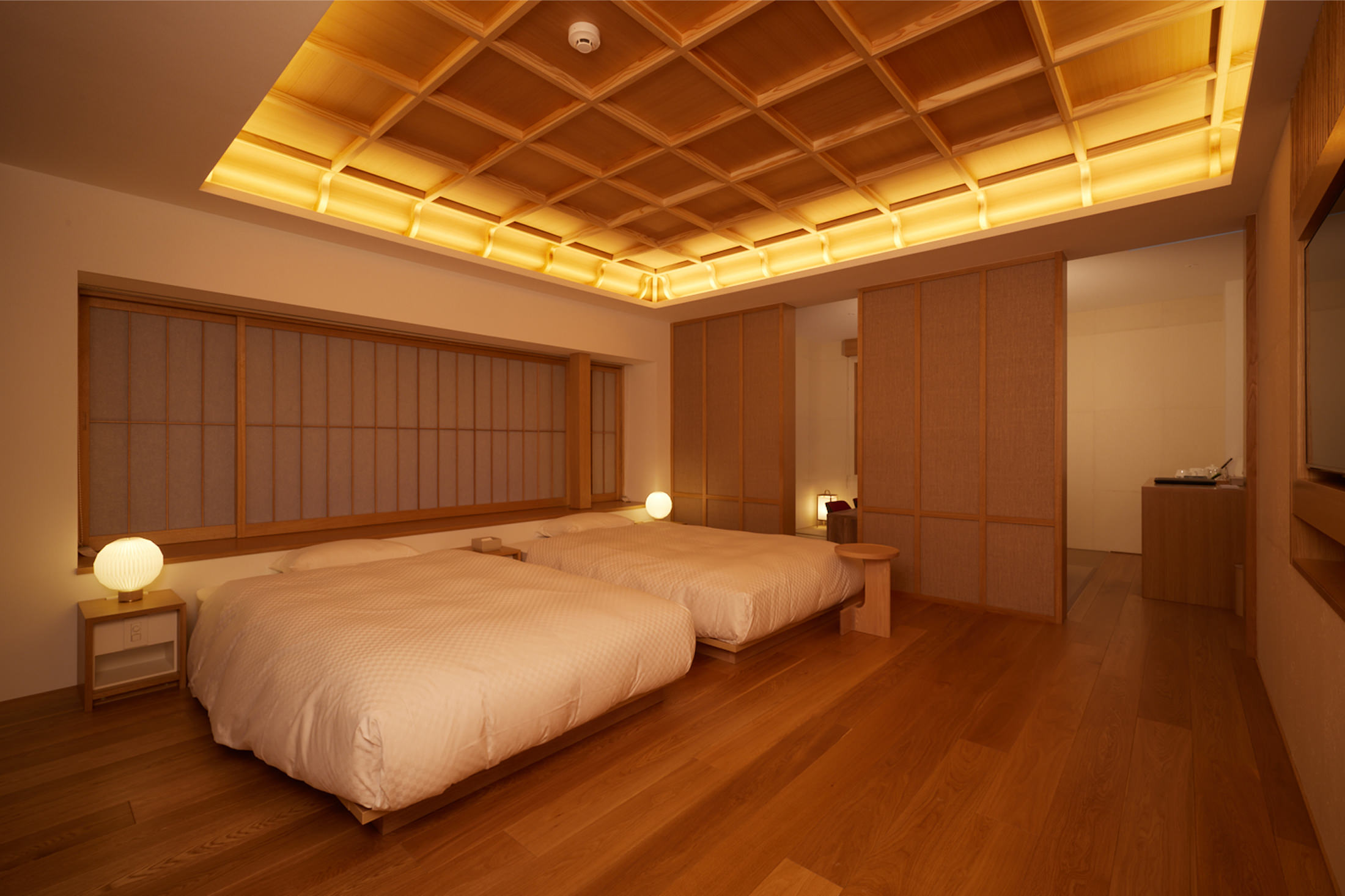 旅館として歴史を刻んだかつての趣を活かしつつ、折上格天井など職人の技が光るお部屋。