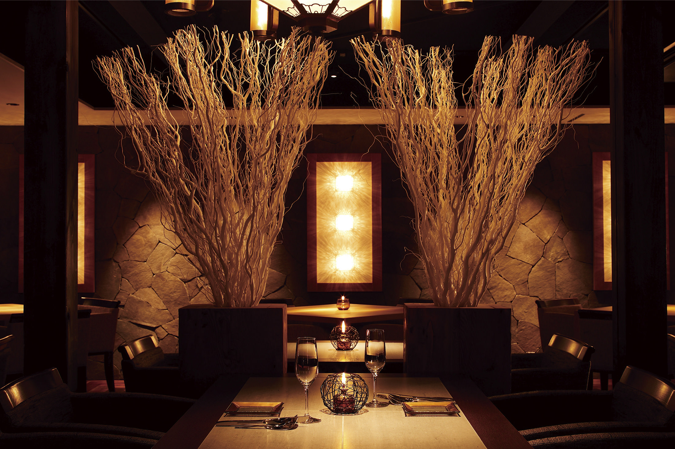 現在では再建が不可能な木造の五層楼閣建築の中に、折上格天井をはじめとした和のおもてなしの設えと、アールデコ様式のモダンな内装が共存。 松下幸之助をはじめ数々の文化人、財界人に愛された料理旅館の趣を残したレストラン、ラウンジにて贅沢なひと時をお楽しみください。