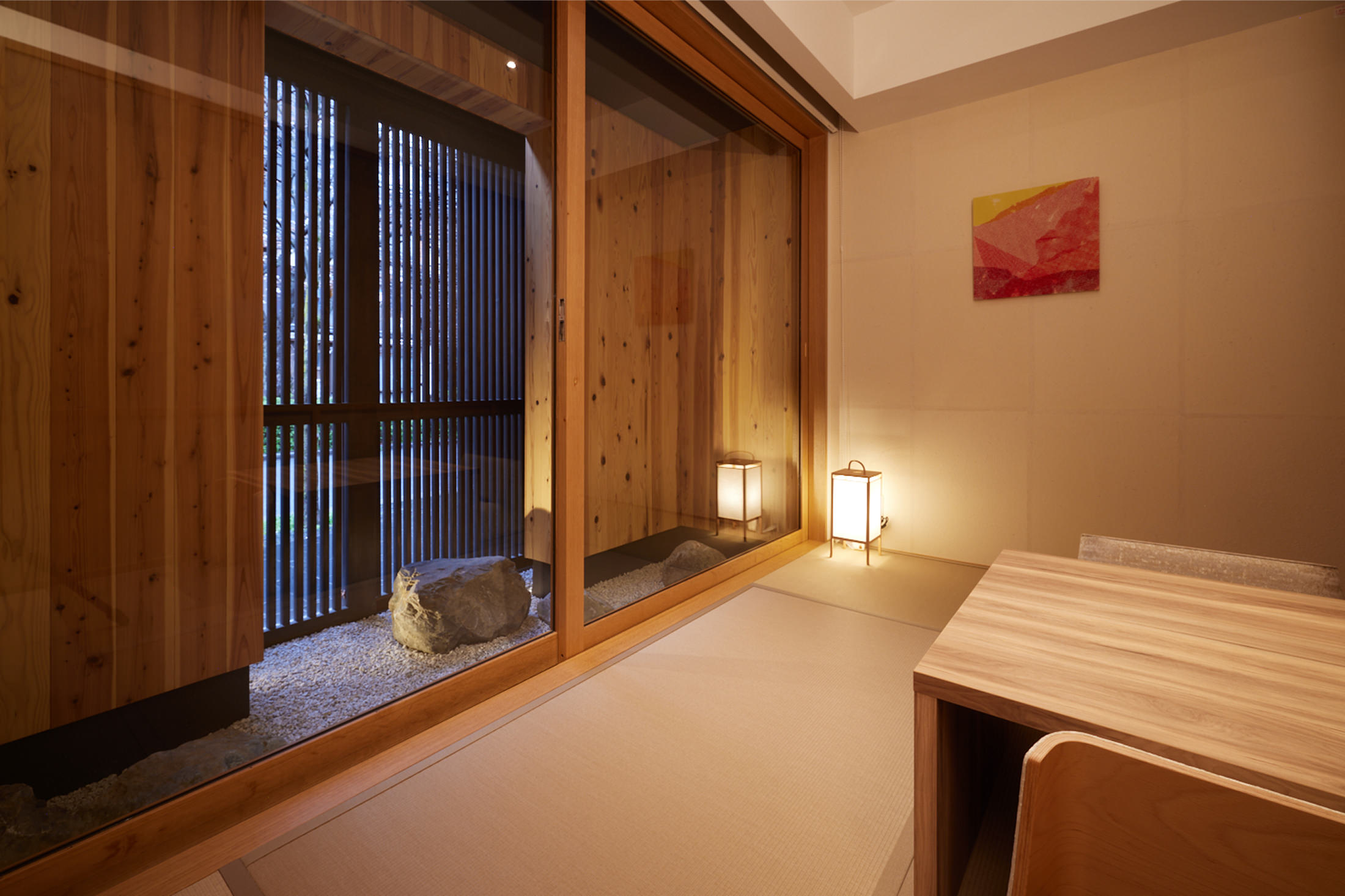 全部屋に和室を備え、木屋町通の古き良き風情を感じながらリラックス。春にはライトアップされる高瀬川沿いの桜が窓から眺められ、京都ならではの風情が楽しめます。