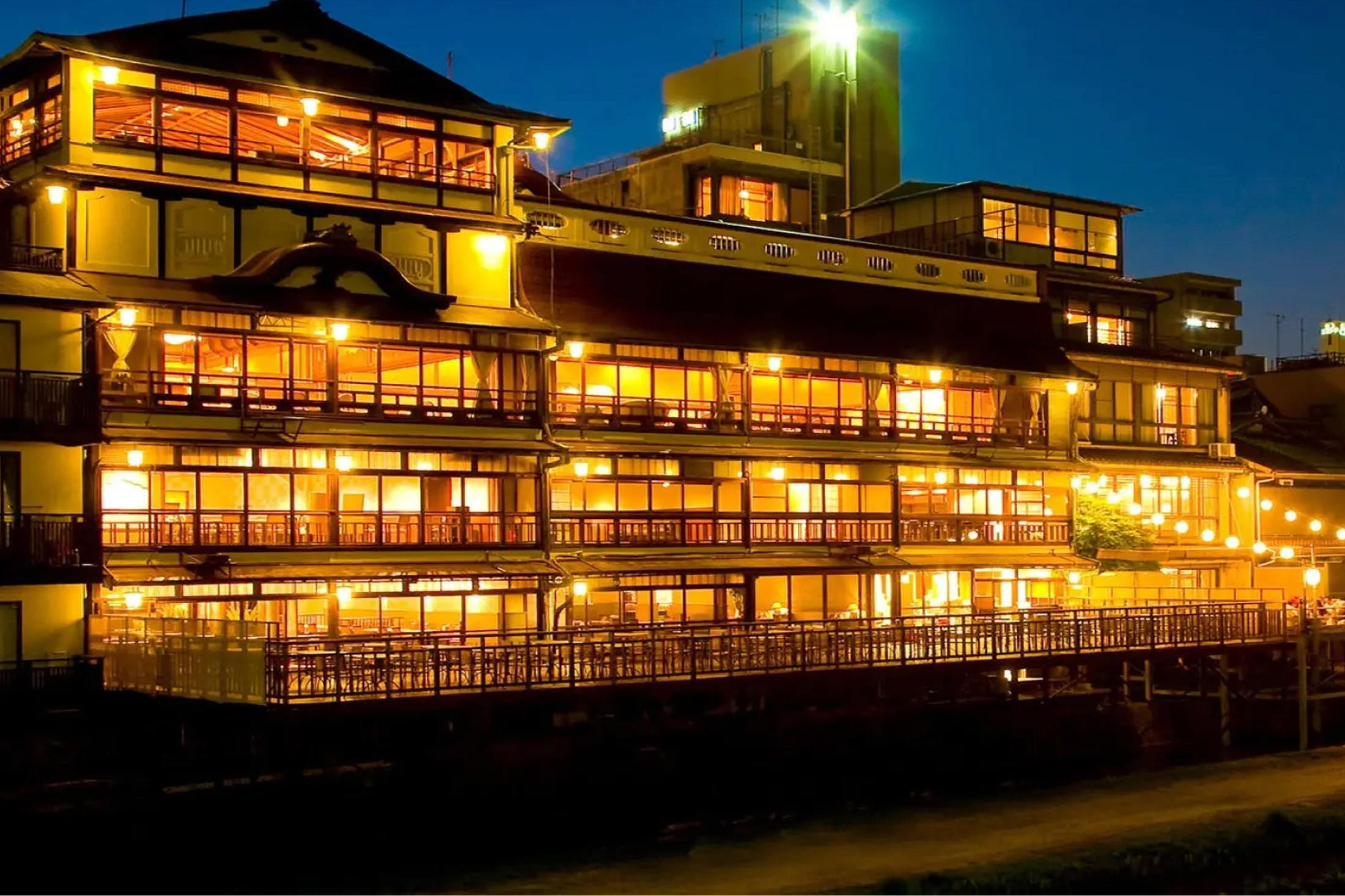 大正14年に建てられ約100年の時を刻んできた元料亭旅館を修繕した鮒鶴京都鴨川リゾート。客室から徒歩2分の距離に位置します。