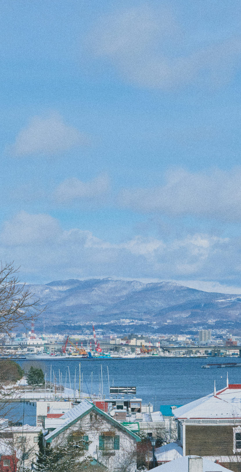 窓に広がる函館湾の輝き