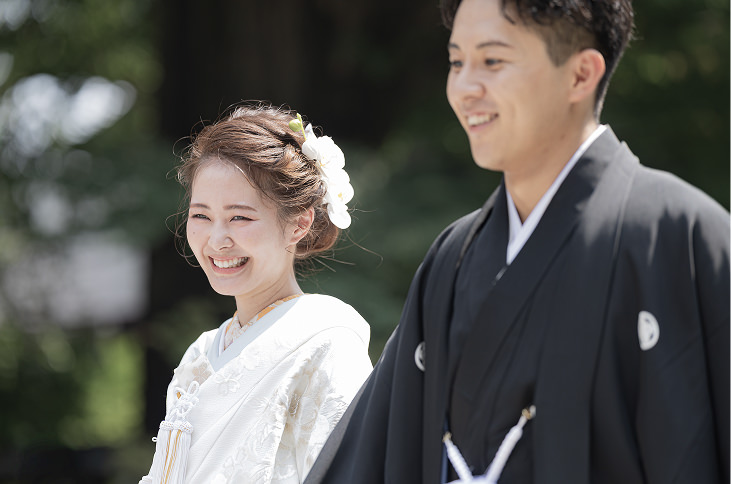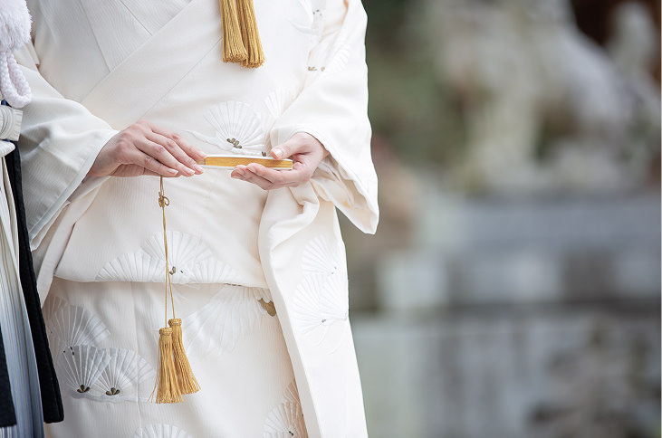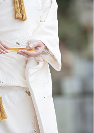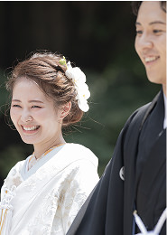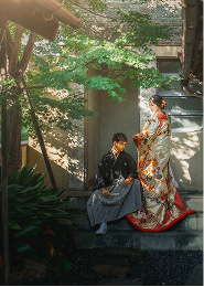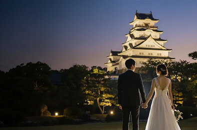 雄大な福山城天守閣を背景に、美しい日本庭園で執り行うセレモニー。