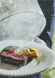 施設内に専用厨房を完備。瀬戸内の恵みを最高の状態で提供する「地産地消の美食」を、40名までの少人数だからこそ行き届く至高のサービスでお届けします。