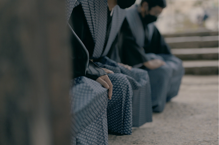 歴史的な和の空間に、備後デニムのしつらえやトレンドのスタイリングを掛け合わせる。